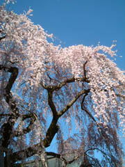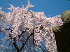 国立博物館の前でバスを降りて、向いにある氷室神社に。樹齢400年、高さ8メートル、エドヒガシという枝垂れ桜が満開でした。奈良公園の中で一番最初に咲く桜らしいです。