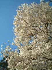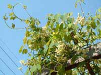 昔、その実が朝廷に献上されていたという由緒正しき植物のムベ。今年はものすごい花がついてます。白くて清楚な感じ。実は甘くておいしいらしい。果実酒にも最適だとかいうので、リッツーさんに送ってお酒にしてもらおうかいのう。(050419撮影)