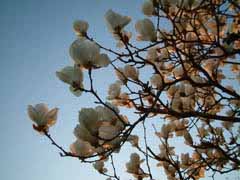 家の木蓮も完全に満開。夕方の光を浴びてオレンジに光ってました。