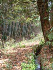 上がその分け入ってしまった竹林の中の道。写真にするとイイ風景になってしまっているなあ。足下おぼつかなかったんですが。竹林の手前には万葉集にも歌われる能登川が。もうちょっと整備したらいい散歩道になるのに勿体無い。