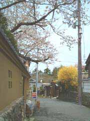 新薬師寺を北に向かって少し行ったところ。レンギョウが綺麗! 左は新しくできたレストラン(?)らしいが、そこの飼い犬ちゃんが気配を感じで道に出てきた。愛想がよくてかわいいワンコでした。