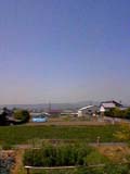 バス停から西の方を望む。向こうの山並は生駒山で、その向こうが大阪です。ここらはちょいと畑やらが広がっているので、バス停はなかなか見晴しがよくていいです。手前に群生して見えるのは、エンドウ豆。写真じゃ見えないけど、この画面中央あたりの電線に百舌鳥がとまって、シッポをぴるぴる動かしていました。見た目可愛いけど、奴らはハンターなので、トカゲやらの獲物を探しているにちがいなし。