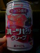 というわけで、5歳児クラスのパソコンコーナーと小学生向けパソコンクラブが終わったら7時過ぎ。バス停まで出たら、宝塚行きのバスが来るまで10分近く。なんで、なんか飲もうと近くにあったポッカの自販機に。んで、いつもはあんまり冒険しないんだけど、魔が差して「とろける食感フルーツゼリーグレープ」というのを買ってしまう。缶に「5回振ってね」と書いてあったので、大事をとって10回振ってみました。しかし....。いくら吸い込んでも全然中身出て来ないし。もうステイプル空けちゃったんで、激しく振ることもできず、がらがらのバスに乗ってから、だましだまし降り続け、ようやく完食したことでした。