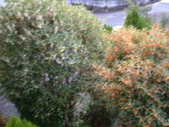 ぶれちゃいましたが、うちの隣の家の金木犀と銀木犀。大きな木です。この2本と、うちにある金木犀3本でものすごいことになってます。