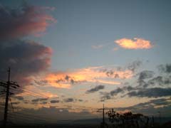 これは今日の夕焼け。低いところの雲はグレーで、高いところの雲がピンク金色でした。高いところの雲は動かないのに、低いところの雲が風でついーと動いていくのが楽しいです。