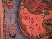 左の絵は、長野県岡谷市にある武井武雄の美術館「イルフ童画館」へ3年ぐらい前に行った時に買ったミニポスター。「EMARATED半島全図」というタイトルの絵で、昔風の地図のデザインに独特のイラストがちりばめてあって、すごくかわいいのだ! 下のが拡大図です。