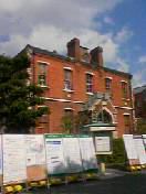 洋館建ての素敵な校舎が並んでます〜。しかし学祭時期なので立て看板がえらい邪魔です。