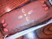 あのモンブラン発祥の老舗、自由が丘モンブランのティーケーキです。チョココーティングしてある本体は、ナッツやドライフルーツどっさりのパウンドケーキでした。あんまりバターっぽくなく、さっくりとしたお味。なるほど、イギリス風なのね。