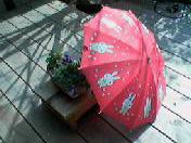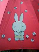 うさこちゃんの子ども用の傘ですよ! 私が幼稚園ぐらいの時に使ってたと思うわ〜。シミはあるけど、破れもなく、いい状態です。でも、なんといってもかわいいのです。しかも丁寧な仕事なのか、骨の数がすごいわ。あのころの傘って、全部こんなんだったんでしょうね。これはコレクターの方に高価に売れるかもしれないなあ。いや、絶対に手放しませんけど。