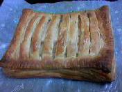 冷凍パイシートを使ったお手軽リンゴのパイです。ほんと、お手軽においしくできました。シナモンとかクリームチーズとか考えたけど、下手に小細工に走らず、シンプルに攻めてます。
