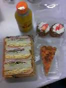 キッシュはチキンとラザニア。サンドイッチはハム玉子ミックスサンドを半分こです。それとデザートにイチゴのデニッシュ。このパン屋、無茶苦茶おいしいわけではないのですが、おかずパンが割と凝ってたりするので、たまに利用します。キッシュはなかなかボリュームあっておいしいです。季節ごとに内容変わるし。今日もツナとゆで卵のとどっちにするか悩んだけど、玉子サンドにしたかったので、そっちはやめました。うーん、でもゆで卵好きとしては、一度は食してみたいものです。