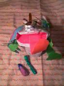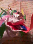 ☆もうだめ.... で、今日は京都のとある女子大の「保育者のための人形劇講座」に参加してきました。とても楽しかった!! のでたくさん書きたいことがあるのだけど、もうだめです。明日補完します。写真だけ載せておこう。 --------------------- 運転手さんが女性でした! すごい、さすがプリンセスライン!と感嘆しつつ一番前の席に坐って、何げにバスのフロントガラスの上にある「運転手」というネームプレートを見ましたら、 どう見ても男性の名前 ええ、もしかしてこのお姉様は、実は男性? プリンセスラインの運転手になるために、女性を装おう古都の片隅に咲いた徒花!? とか思いめぐらすこと10分。某女子大に到着。「ご乗車ありがとうございました〜!」の声は普通のソプラノボイスでした。いや〜ん、オカマ声だったらどうしようかと思ったわさ。まあ、ネームプレートは換え忘れたんでしょうね、きっとね。 とさて、研修会は、現在北九州にお住まいで、昔人形劇団プークにもいらっしゃったというご夫婦がされている「人形劇団ののはな」の人形劇鑑賞と、人形下づくりのワークショップという内容でした。 人形劇の方は、ご主人の方の一人芝居で、「スーパー人形劇」と「あかずきんちゃん」の二本立て。 で、ワークショップですが。