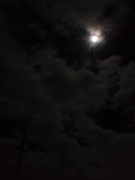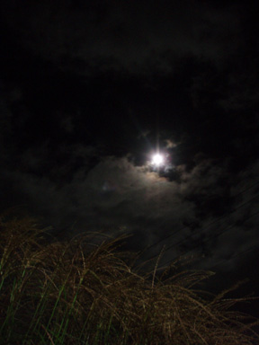 ☆十五夜 で、今週の反省点、「児童文化」の授業の準備を前日にするのはヤメレ、ということで、準備物は早々に揃えちゃおう、と思って、ダイソーに寄る。ただし、バスの時間があるので大慌て。しかし目当てのカラービニル袋がな〜い。ああいうのはやはり東急ハンズに行かねばないのでしょうか。なんで兎も角色画用紙だけでも買って帰ろうと思って、レジに向かったら、 外国の方ばかりで長蛇の列 こないだも思ったのですが、この、奈良駅前の東向き商店街のダイソーは、近頃外国人のお客さんでいっぱいなんですよ! 傘とかタオルとか、旅行中に便利なものを買っておられるようなんですけど、なんすかね、ガイドブックにでも紹介されたんですか!ってぐらい最近外国人のお客さんが多いのです。なもんで、必然的にレジの進むのが遅い....。買うの諦めてバスに向かいました。はう〜。明日、神戸に出るので、東急ハンズに寄りますそうします。 はさておき。今日は仲秋の名月。でも月の出は曇ってて見れずに残念。とはいえ、夜半に晴れてきたので、写真撮ってみました。