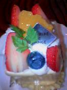で、仕事の本ですが、今まで、学校の図書館で借りてた、とか、わざわざ大阪市立中央図書館まで行ってた、とか、自分の持ってる本ですませてた、というのもあって気づいてなかったのですが、普通の図書館の児童室には、人形劇の本がいっぱい置いてあるのね....。あとパネルシアター(ネル布地を張ったパネルに、不織布で作った人形を貼ったりはがしたりして演じる人形劇のことです)の本もあるんじゃん〜。ってなわけで、いろいろ使えそうな本を借りてきました。 でさて、図書館の帰りにお母ちゃんのリクエストに応えてケーキを買ってきました。左はミルフィーユで、右はフルーツショートケーキ。 |