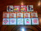 わはは、チロルチョコ麻雀パイバージョンの杏仁豆腐です〜。随分前にいつも日記を拝見してる方のところで写真を見て、いっぺん実物見たい!と思ってたのに、チロルのサイトでは、「生産中止」なんてニュースが載ってたので、手に入らないとがっくりしてたのですが、何故かうちの近所にはあったわ。灯台元暗し。