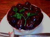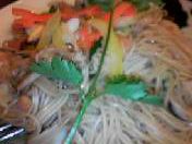 で、左はフルボトルの赤ワインでございました。いや〜、Tチーとは1ヶ月ぶりでして、話すこともいっぱいたまってましてね。いろいろ共通の迷惑な知り合いの方のしでかした、とても迷惑だった話などをしたりして。かなり黒い汁を吐いてきました。すっきり。でも、途中から酔っぱらってきちゃって、何話したかよく覚えてな〜い。ダメじゃん。
