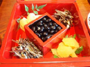 左、一の重。カズノコは酒かす漬けだったのですが、すごくおいしかったですわ〜。酒が進みます。右、二の重。お節のはずですが、どうみても普段のお弁当? でも今年の肉団子はとてもおいしゅうできました。しかしB型のうちの母が丸めたため、大きさがまちまち。オイ。