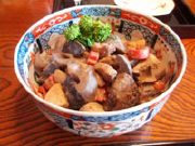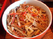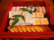 左、きんぴらごぼう。関西はたたきごぼうなんですが、あんまり売れないので、最近はもうきんぴらを。....普段のおかず? 右、栗きんとん。今年はお芋がよくて、できあがりが芋羊羹のようになりました。
