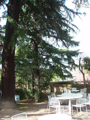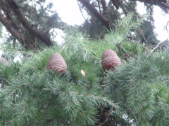 庭のヒマラヤ杉の大木のまつぼっくり。鳩が枝に坐ってるみたいでカワイイのだ!
