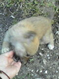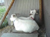写真じゃよくわかりませんが、全長30センチはあると思う、けっこう大きく育ったカメちゃんです。広い庭に放し飼いで、とても幸せそうでした。その後、のそのそと歩き始めたので、どこに行くのかな〜とワクワクして見てましたが、何分、アユミのノロイ〜カメちゃんなので、なかなか距離を稼ぎません。仕方なく、お店を後にしましたが、かわいかったわ〜。いいなあ、カメちゃん、飼いたいです。昔、ミドリガメ飼ってましたが、けっこう馴れるし愛いんですよねえ。 で家に帰ってきて、散歩に出かけてきました。 で、ちょっと足を伸ばして、ヤギを見に行こう!となり、アンティーク屋さんの旦那さんのやってる畑まで。